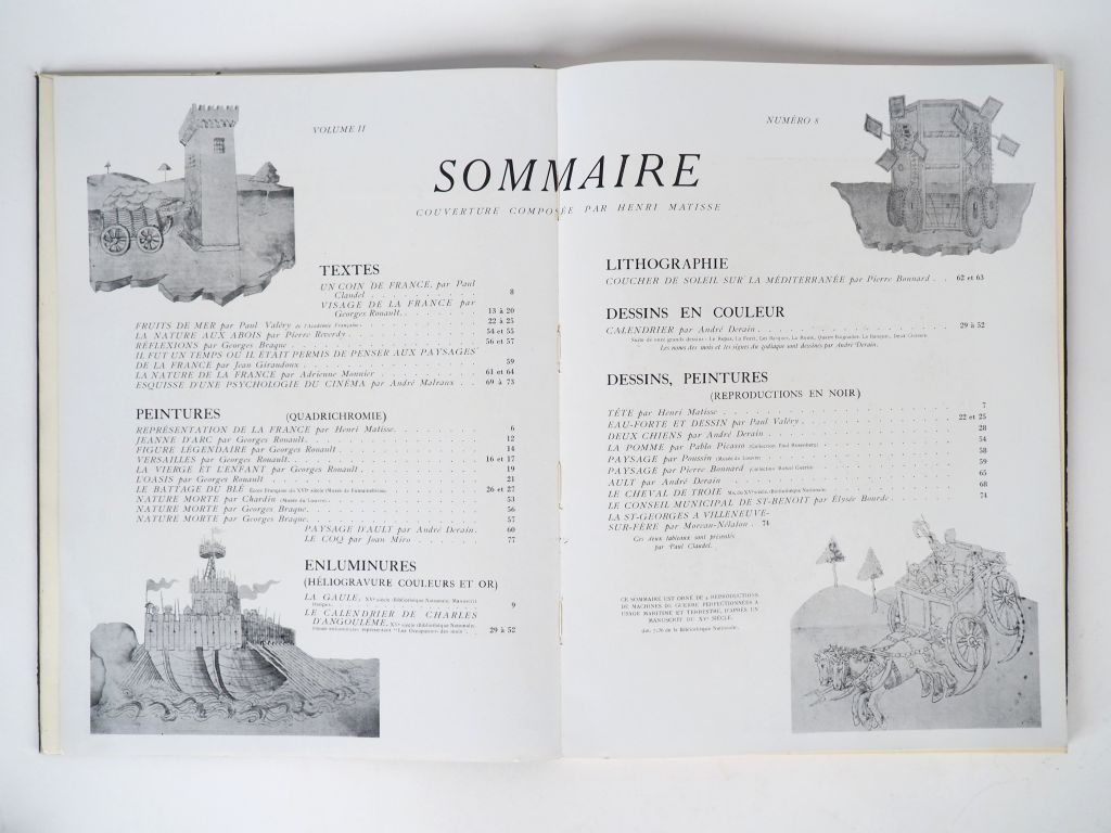 VERVE Vol 2, n° 8. 1940. Textes : Rouault, Claudel, Valéry, Reverdy, Malraux.. Peintures : Rouault, Derain, Braque… Couverture originale par Henri Matisse. In-4, cartonné, jaquette à rabats