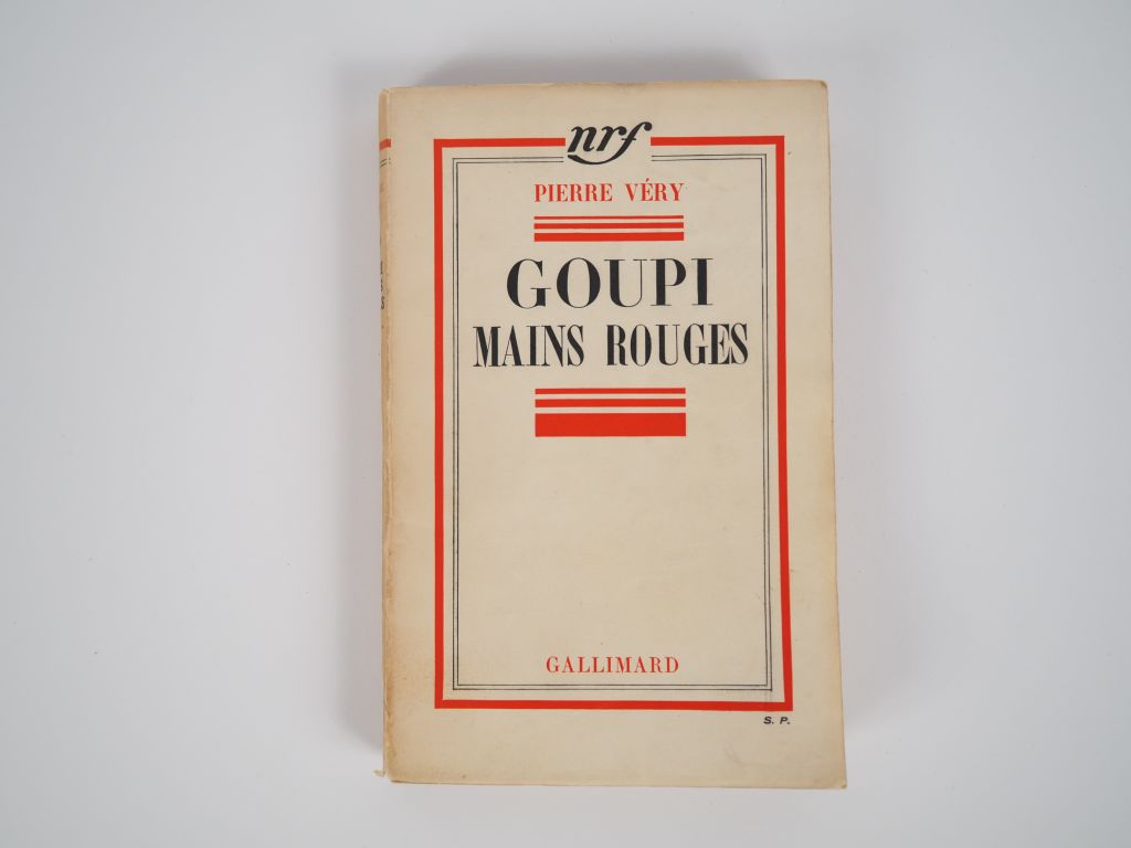 VÉRY (Pierre). GOUPI MAINS ROUGES. P., Gallimard, 1937. In-12 broché. Dos légèrement bruni. ÉDITION ORIGINALE sur papier d’édition (pas de tirage de luxe annoncé). Exemplaire du Service de Presse comportant un ENVOI AUTOGRAPHE signé de l’auteur : « A Joe Bousquet / très cordialement / P. Véry ».