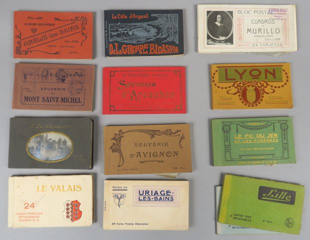 Lot de 8 albums de cartes postales et un album de gravures au prix de 300 à 450 € en vente aux enchères par l'hôtel des ventes Primardeco