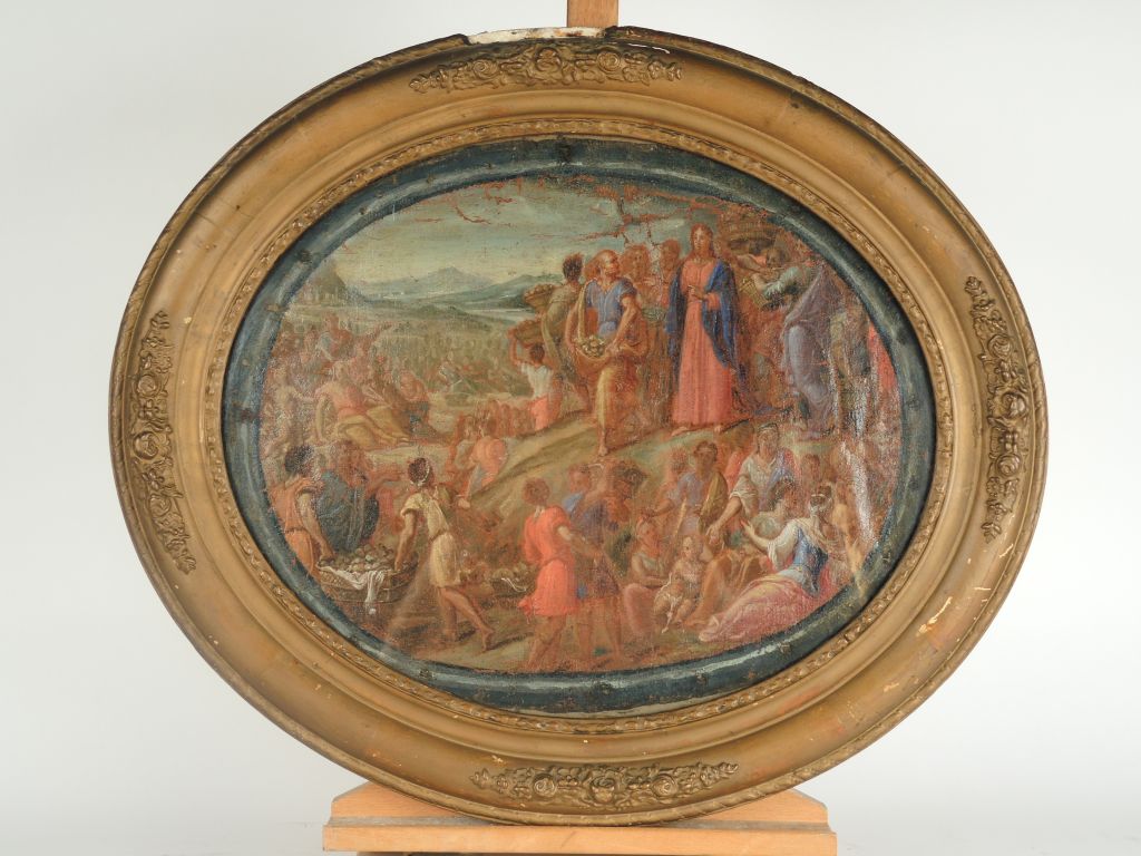Attribué à François VERDIER (1651-1730). "Le Christ servi par les anges , la multiplication des pains" paire de toiles ovales Hauteur : 36 cm Largeur : 45 cm manques Expert : Cabinet Turquin - Stéphane Pinta