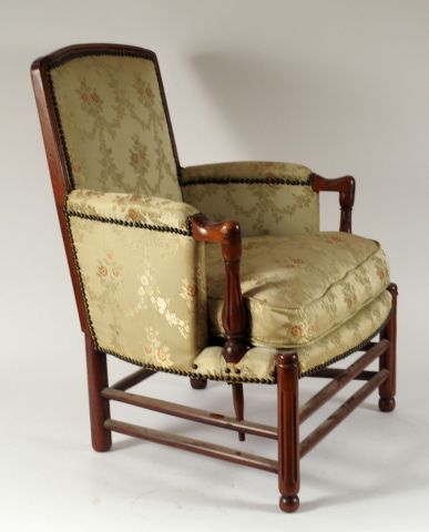 Lot de Bergère d'enfant XIXème en noyer, garniture de soierie vert amande. au prix de 150 à 200 € en vente aux enchères par l'hôtel des ventes Primardeco