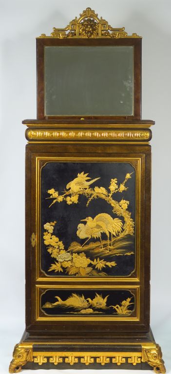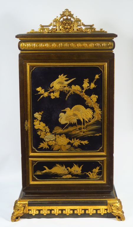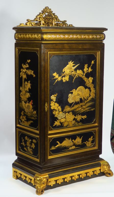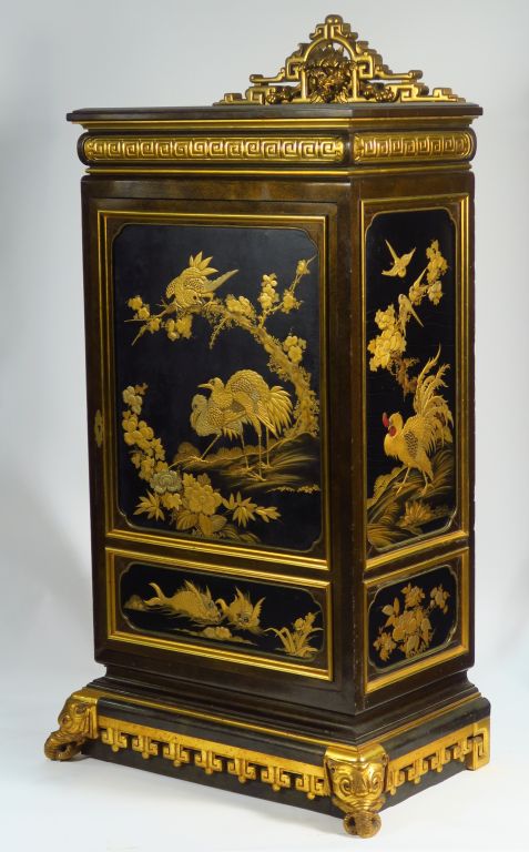 Cabinet ou médailler XIXe en laque du Japon et laque aventurine. Dim. : 151 x 82 x 50 cm.