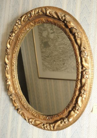 Cadre médaillon de style Louis XVI en bois sculpté et doré à décor de feuilles de chêne. 53 x 45 cm