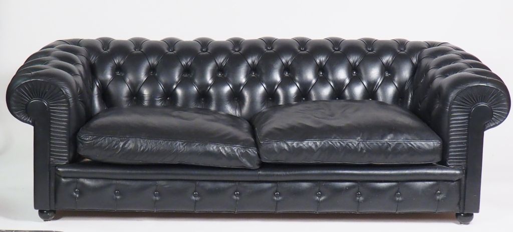 Canapé Chesterfield en cuir noir.