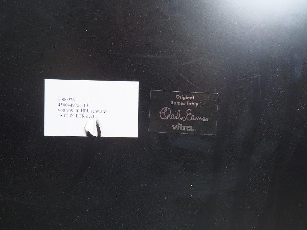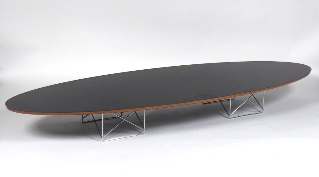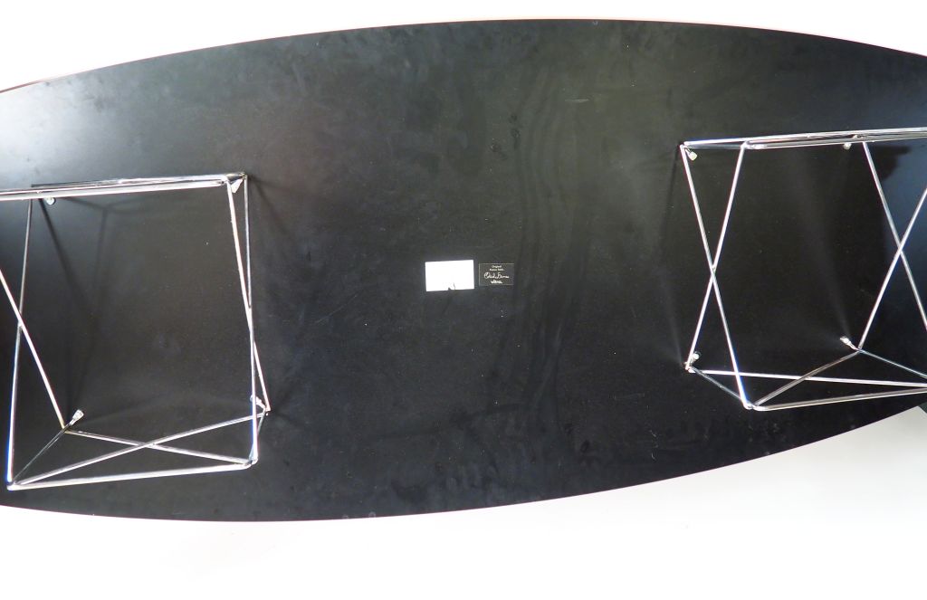 Charles EAMES. (d'après) Grande table basse ovale édition Vitra en bois stratifié et laqué. Signée. Dim. 225 x 73 cm