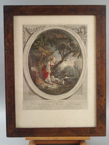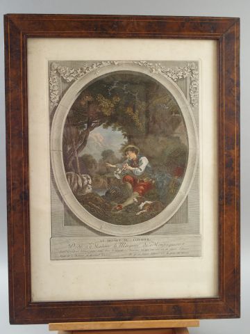 Deux différentes gravures en couleurs d'après Boucher "L'arrivée du courrier" et "Le départ du courrier"