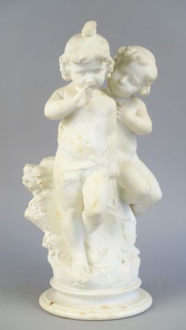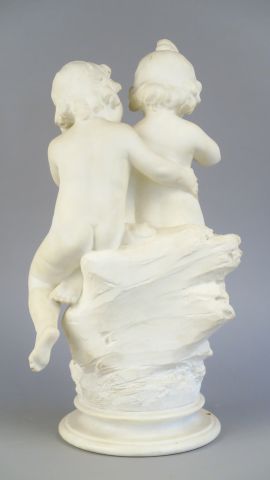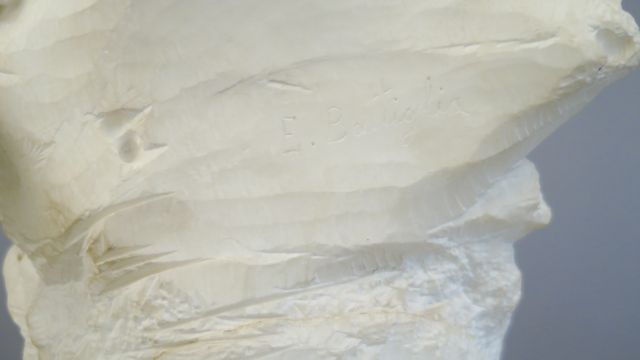 E. BATTIGLIA « Les deux fillettes » Groupe en marbre blanc sculpté. Signé au dos H. : 49.5 cm