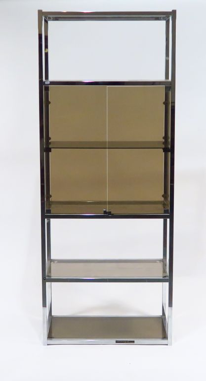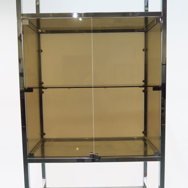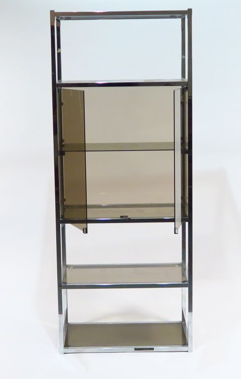 Etagère en métal et verre fumé. Dim. 196,5 x 77,5 x 37 cm