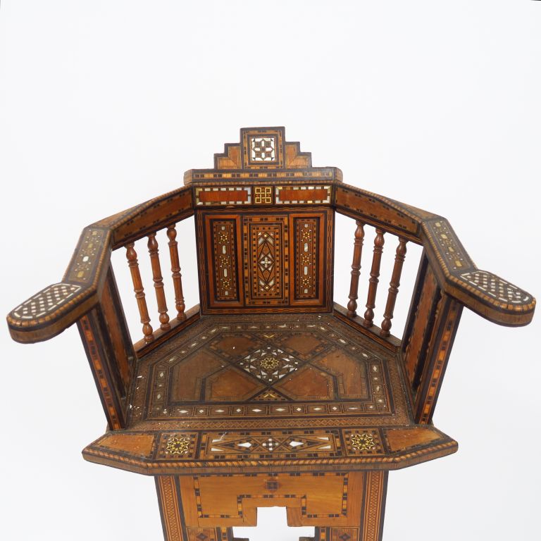 Lot de Fauteuil syrien 1900 en marqueterie. au prix de 100 à 120 € en vente aux enchères par l'hôtel des ventes Primardeco