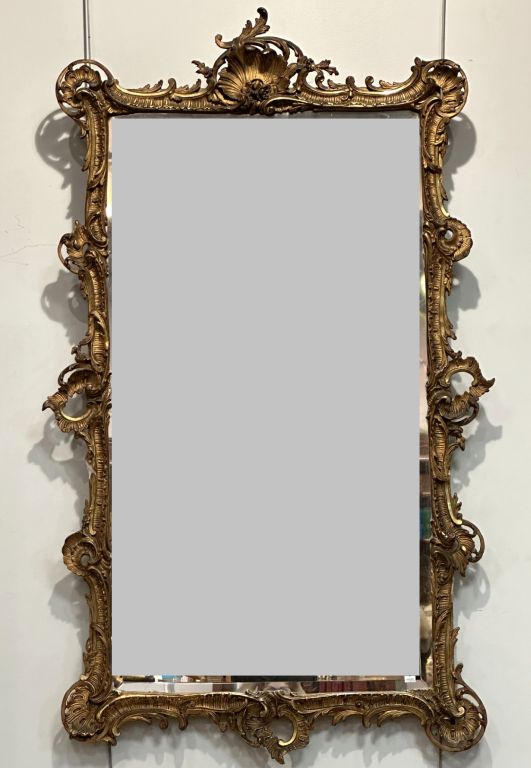Glace de style Rocaille en bois et stuc doré ajouré. Dim. 150 x 85 cm (petits accidents)