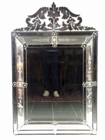 Glace en verre de Venise, à décor de fleurs et de fleurons. H. 126 x 80,5 cm