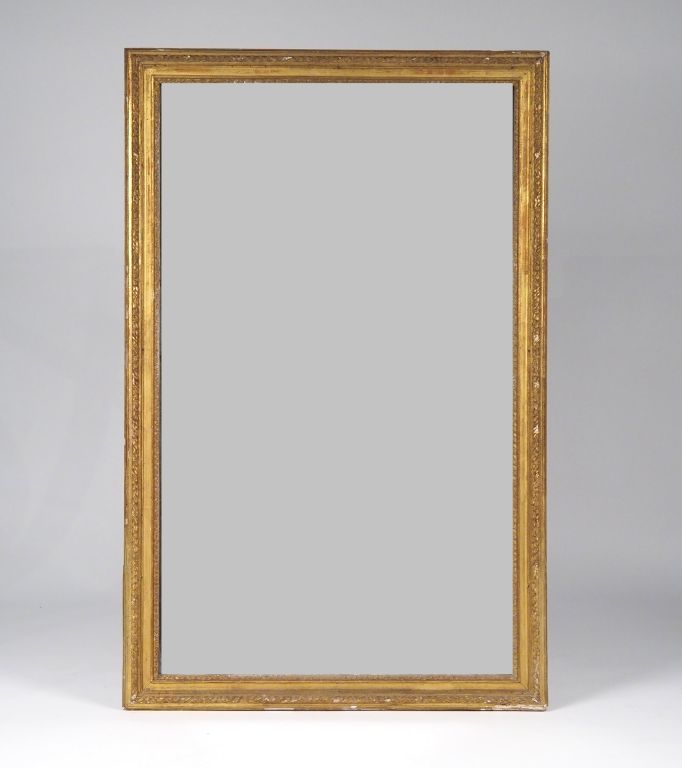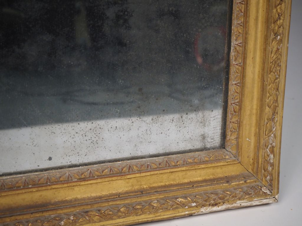Glace trumeau de style Louis XVI, cadre en bois et stuc doré Dim. 152 x 98 cm (petits éclats)
