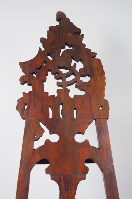 Grand chevalet 1900 en bois sculpté. H. 215 cm