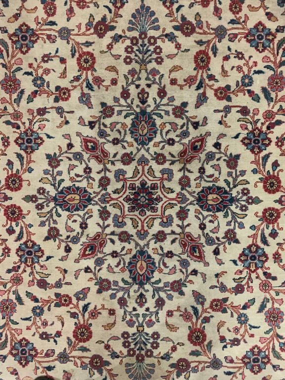 Grand tapis d'Orient décor de fleurs rose. Dim. 345 x 253 cm