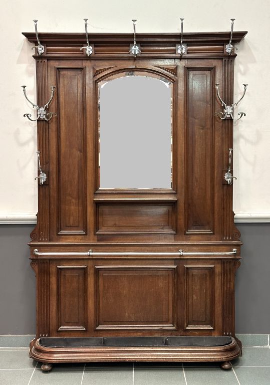 Grand vestiaire de style Henri II en noyer et métal chromé. Dim. 203 x 138 cm