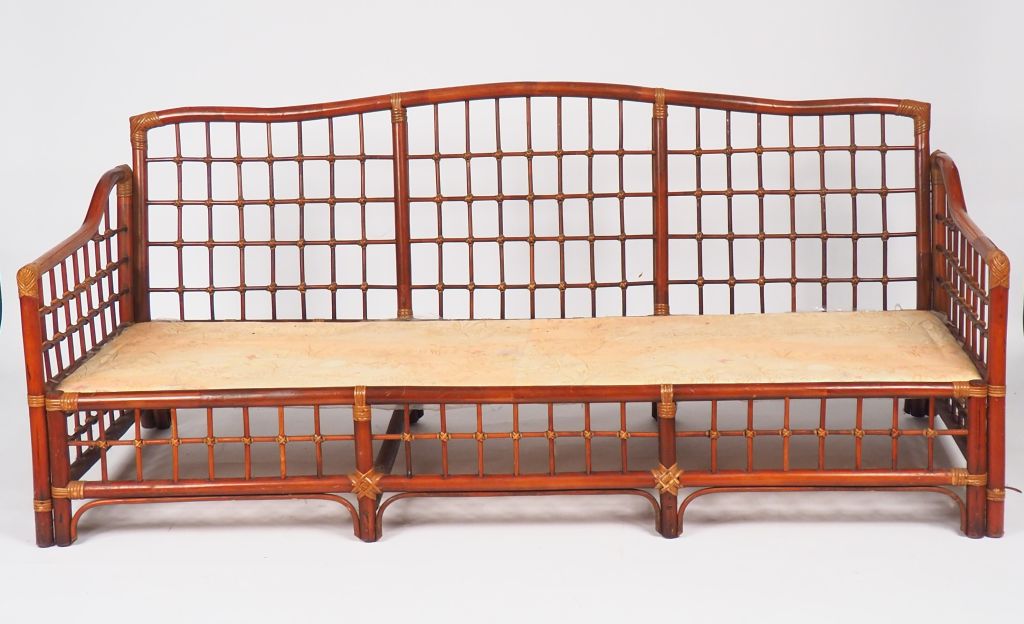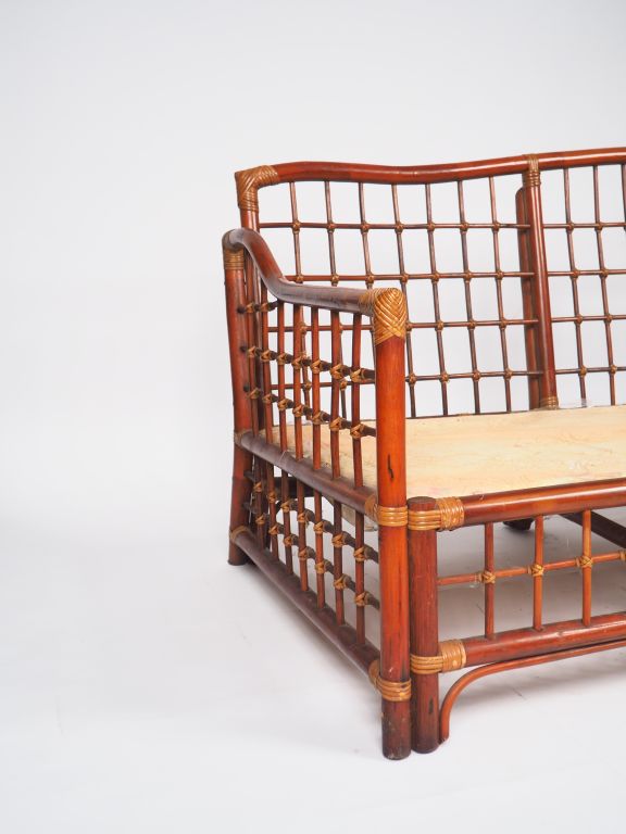Grande banquette de style anglo chinois en bambou Dim. 80 x 188 x 80