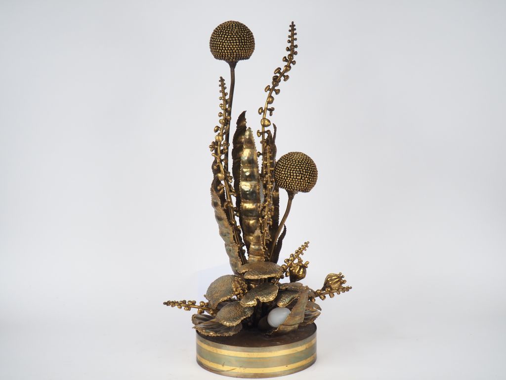 Lot de JANSEN. Lampe en laiton, modèle au chardon. H. 69 cm au prix de 400 à 600 € en vente aux enchères par l'hôtel des ventes Primardeco