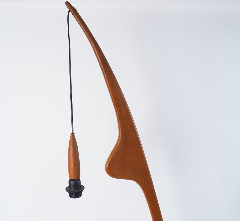 Jean RISPAL. Lampadaire "Mante religieuse" en bois naturel. (manque l'abat jour) H. 164 cm
