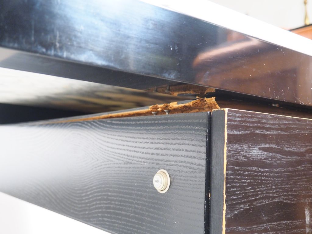 KNOLL. Grand bureau en métal et bois laqué noir, plateau marbre. (Tiroir accidenté). Dim. 71 x 171,5 x 85,5 cm