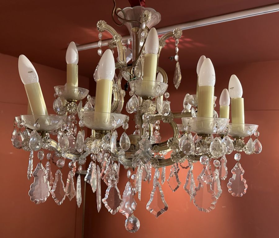 Lot de Lustre à pampilles en cristal. H. 71 cm au prix de 200 à 300 € en vente aux enchères par l'hôtel des ventes Primardeco