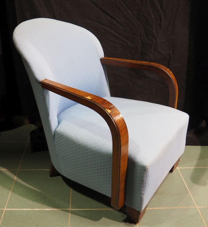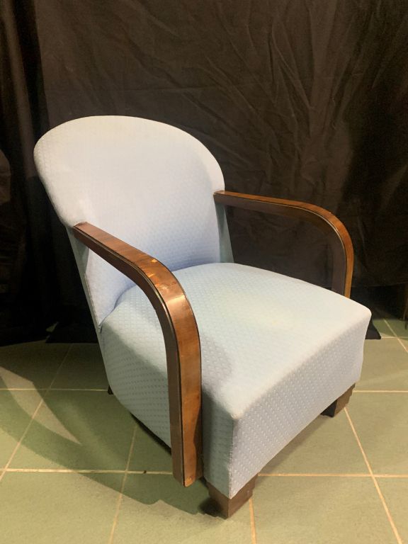Maurice ALLET. Paire de fauteuils club, dossier gondole. (quelques sauts de placage).