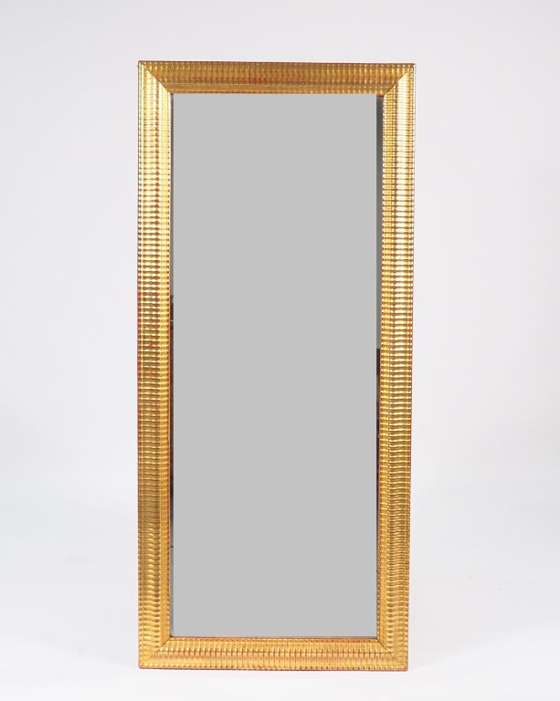 Miroir Louis-Philippe en bois et stuc doré à décor godronné. Dim. 156 x 70 cm.