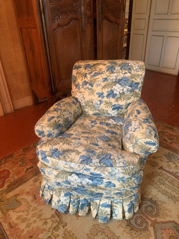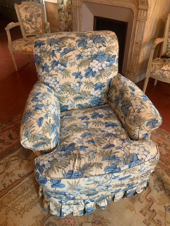 Mobilier de salon comprenant : un canapé et une paire de fauteuils en chintz.