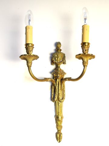 Lot de Paire d'appliques de style Louis XVI en bronze, éclairant à deux lumiè au prix de 80 à 100 € en vente aux enchères par l'hôtel des ventes Primardeco