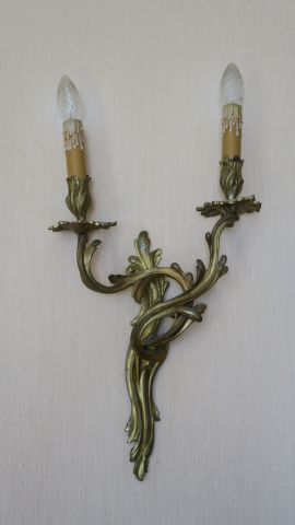 Paire d’appliques doubles de style Louis XV en bronze doré, à décor de feuillage