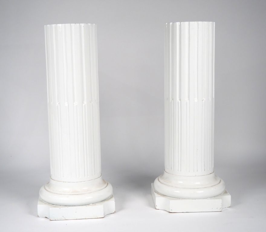 Paire de colonnes cannelées et rudentées en bois laqué blanc. H. 113 cm (fente)