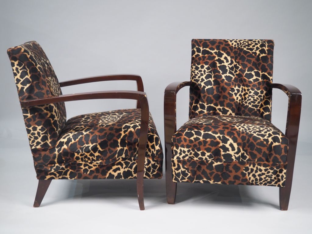Paire de fauteuils Art Déco en acajou, garniture de velours léopard.