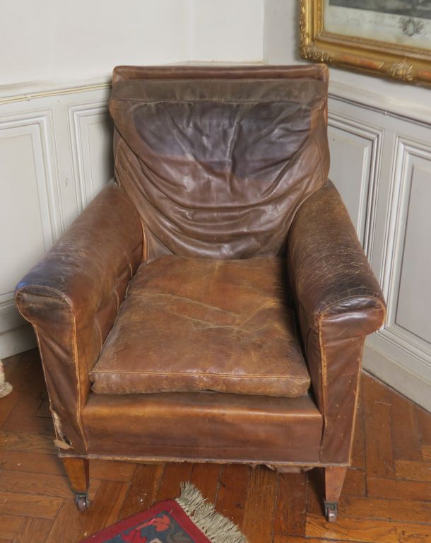 Paire de fauteuils club en cuir. (mauvais état)