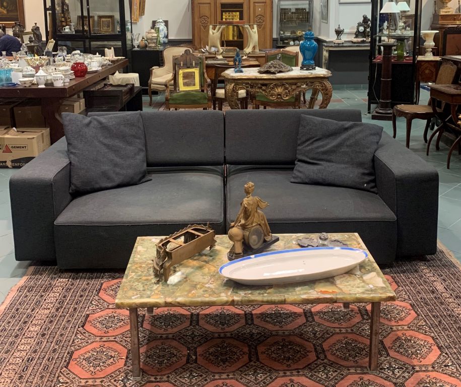 Paire de grands canapés modernes, garniture de tissu anthracite. Dim. 80 x 242 x 108 cm