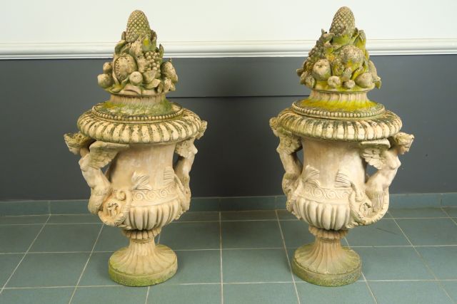Lot de Paire de pots couverts de jardin en terre cuite. H. au prix de 1000 à 1500 € en vente aux enchères par l'hôtel des ventes Primardeco