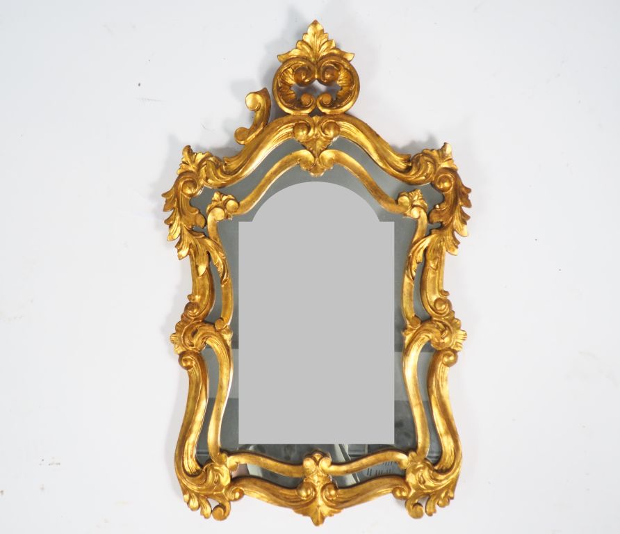 Petit miroir à parecloses de style Louis XV en bois et stuc doré. Dim. 77,5 x 48 cm