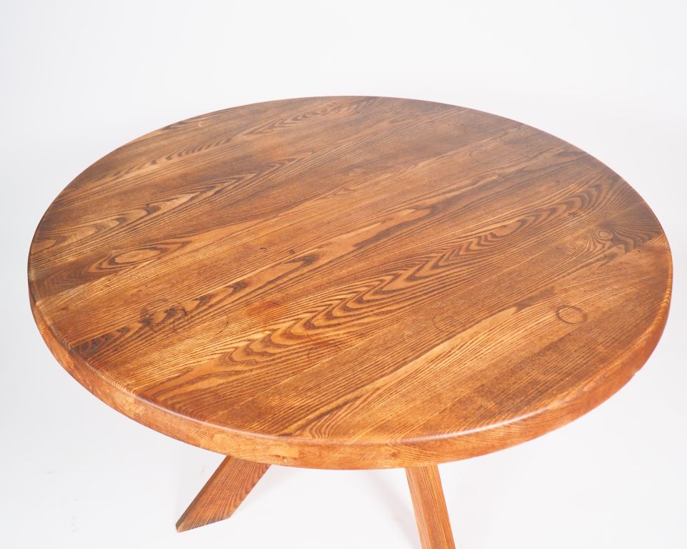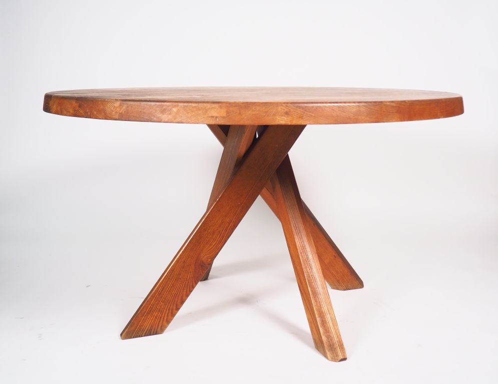 Pierre CHAPO. Grande table circulaire, modèle T21 "Sfax" en orme massif. Dim. 73 x 126 cm.