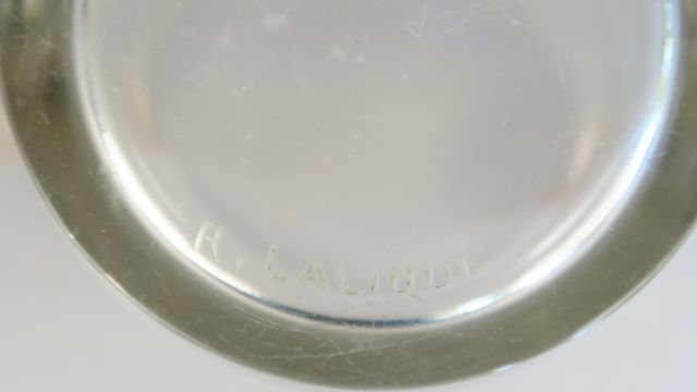 Lot de R. LALIQUE. Vase à anses, à décor de fleurs. Signé (accident) au prix de 200 à 300 € en vente aux enchères par l'hôtel des ventes Primardeco