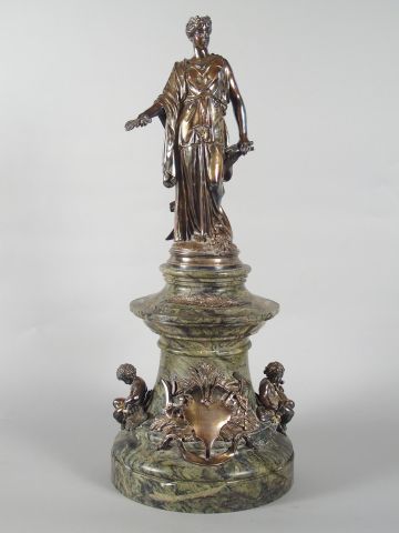 Récompense du ministère de l'agriculture 'Prime d'Honneur'. Groupe en argent et marbre, représentant une allégorie de l'agriculture, poinçon Minerve. MO : F. Poisson. H. : 64 cm (petits accidents au marbre)