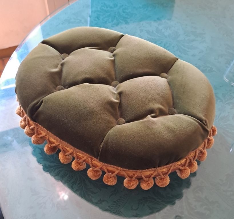 Repose pieds ovale Napoléon III en bois doré, garniture de velours vert à capitons Vente sur désignation Le repose pieds se trouve dans une maison à Catus dans le lot (46) Prendre contact avec l'Etude pour l'enlèvement