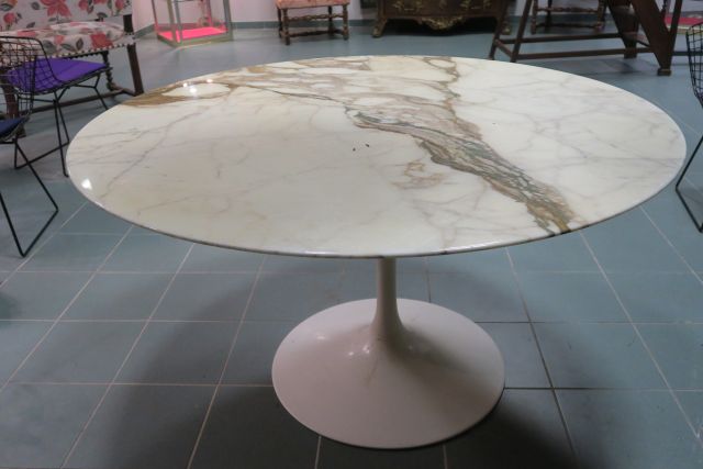 Saarinen. Table de salle à manger en marbre 'Arabescato' et fonte d'aluminium
