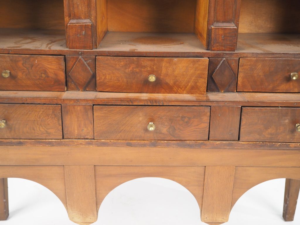 Secrétaire en noyer à décor d'arcatures ouvrant à six tiroirs. Dim. 102 x 80 x 30 cm.
