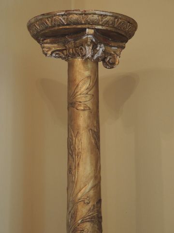 Sellette 1900 en bois et stuc doré, à décor de branches d’oliviers et de chapiteaux de style composite (sauts de dorure) H. : 1.30 m