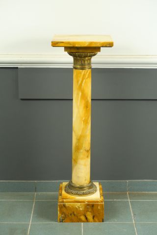 Sellette de style Empire en marbre jaune et bronze doré (petites égrenures). H. : 106 cm