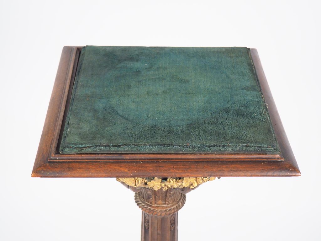 Sellette en bois naturel et doré de style Louis XVI, décor de cannelures rudentées, ornementation de métal doré. H. 102 cm
