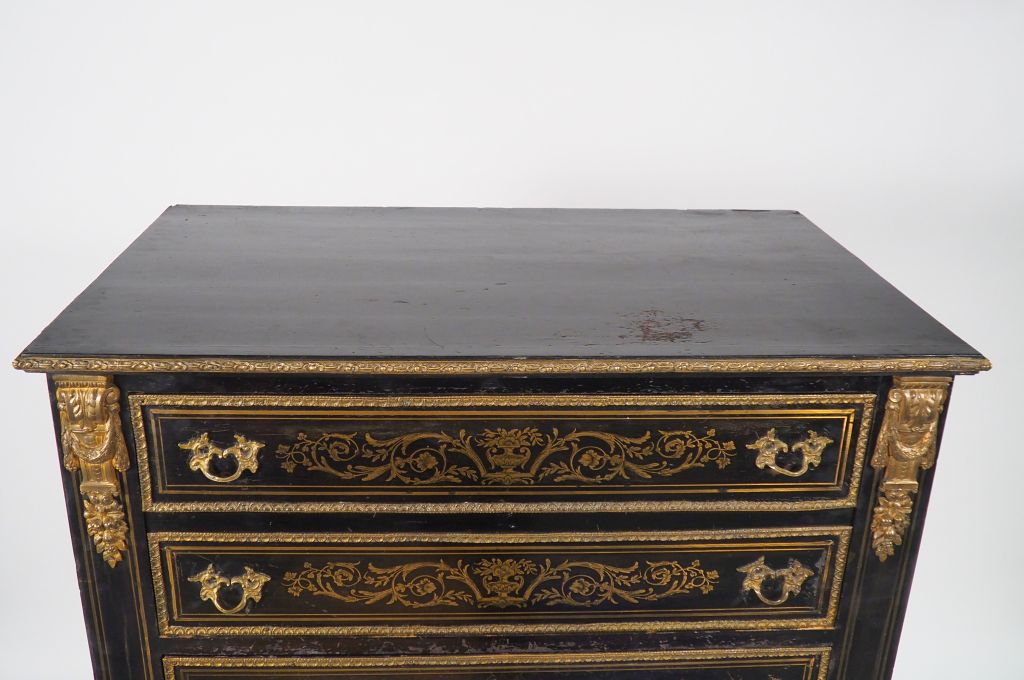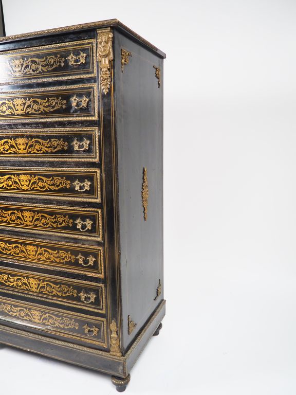 Semainier Napoléon III en marqueterie Boulle et bois noirci, ornementation de bronze doré. Dim. 142 x 89 x 52. (Manques, usures)