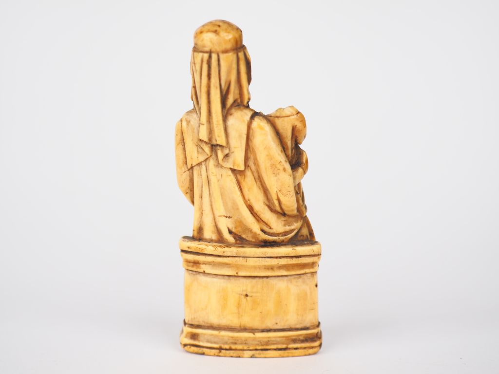 Sujet fin XVIème début XVIIème en ivoire "Vierge à l'enfant". H. 8,5 cm (accidents visibles)