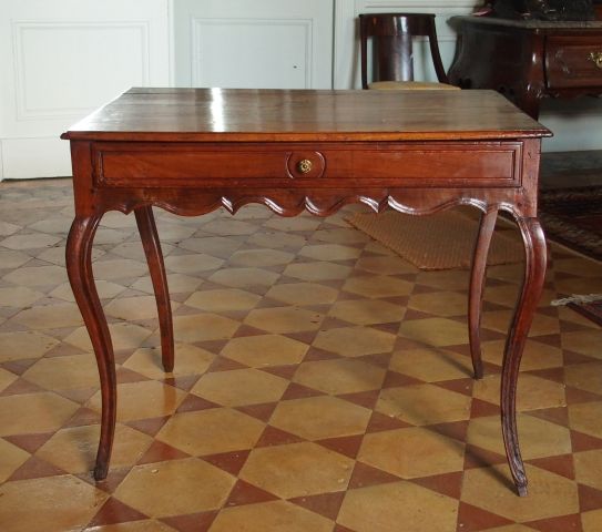 Table à écrire Louis XV en merisier, ouvrant à un tiroir en ceinture, ceinture sinueuse, pieds galbés (restaurations)