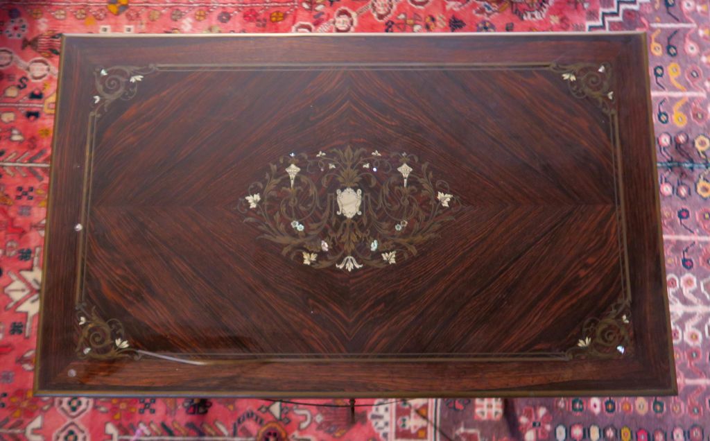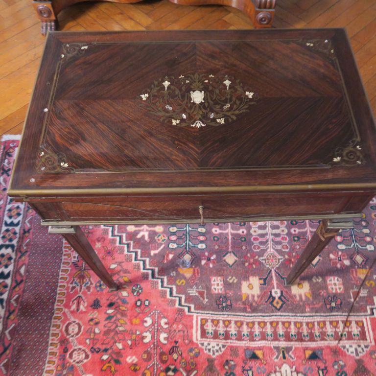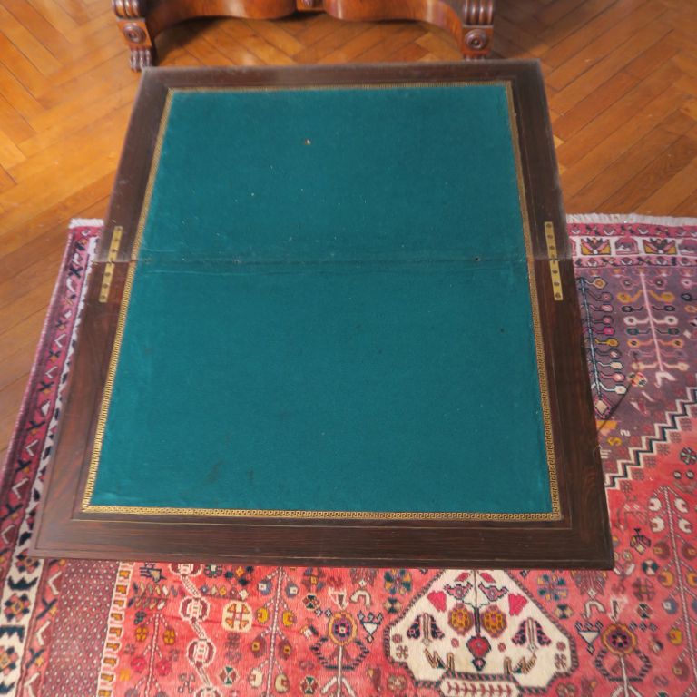 Table à jeux Napoléon III en marqueterie Boulle. (mauvais état). Dim. 74 x 68 x 42 cm