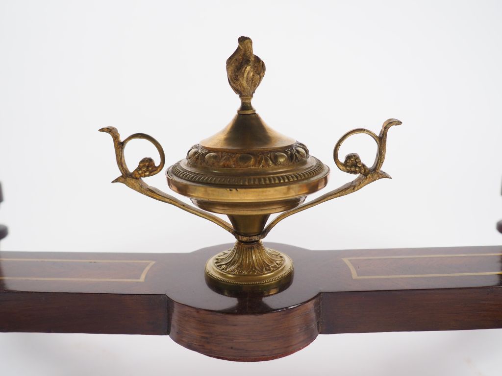 Table de milieu de style Louis XVI en marqueterie Boulle sur fond de palissandre. Belle ornementation de bronze doré. 75 x 116,5 x 65,5 cm