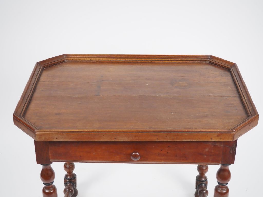 Table de milieu Louis XIII en bois mouluré, dessus, un tiroir en ceinture, pieds tournés, entretoise en H. Provenance : Galerie Marcel Puech. Dim. 67 x 78 x 58 cm. (plateau fendu, taches).